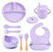 This imported 9-piece silicon feeding set is made from premium quality, soft, non-toxic material. Choose from a variety of colors to match your baby's style. Enjoy peace of mind knowing your little one is safe and comfortable during mealtime.
