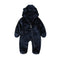 This premium quality imported dark blue romper features the softest and fluffiest plush fleece material for a warm and cozy feel. Available in different sizes, this cute dashing romper is perfect for snuggles and lounging around in style. Experience the ultimate comfort with this must-have addition to your wardrobe.full sleeves with mittens if needed